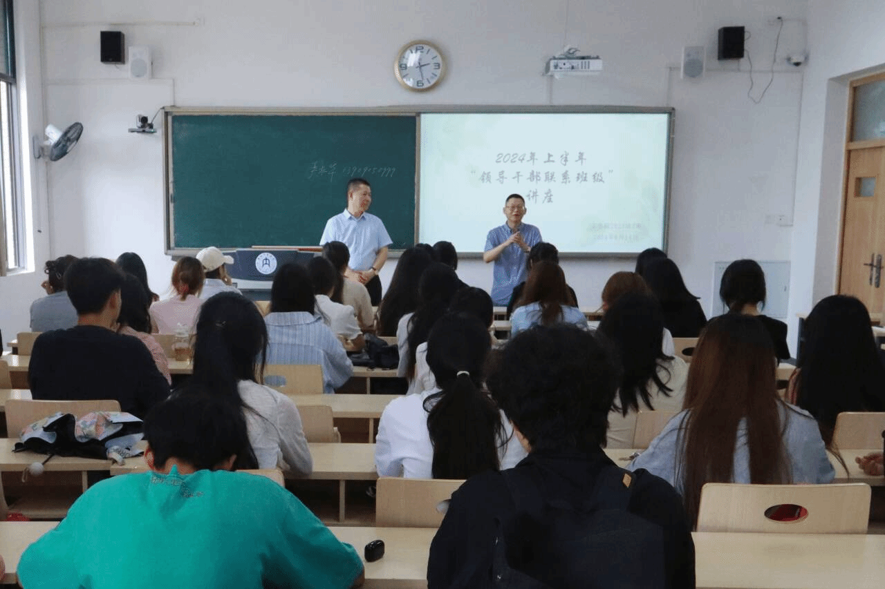 为了加强领导干部与班级之间的沟通交流,了解学生的学习生活情况,同时为学生提供职业规划、心理健康等方面的指导,我院于6月14日下午2点30分在明德楼B区114教室开展主题教育学习专题讲座,此次讲座由我校纪委副书记、纪委纪检监察室主任严杜华主讲,我院2023级7班全体同学共同参与。