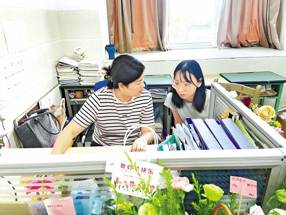教师节过后,钟宇的办公桌添上了鲜花和新的小摆件,这些都是学生送她的节日礼物。伴着孩子们的心意,身兼年级组长、班主任、科任教师的钟宇伏案忙碌,认真梳理教学管理工作,并为接下来的授课做着积极准备。