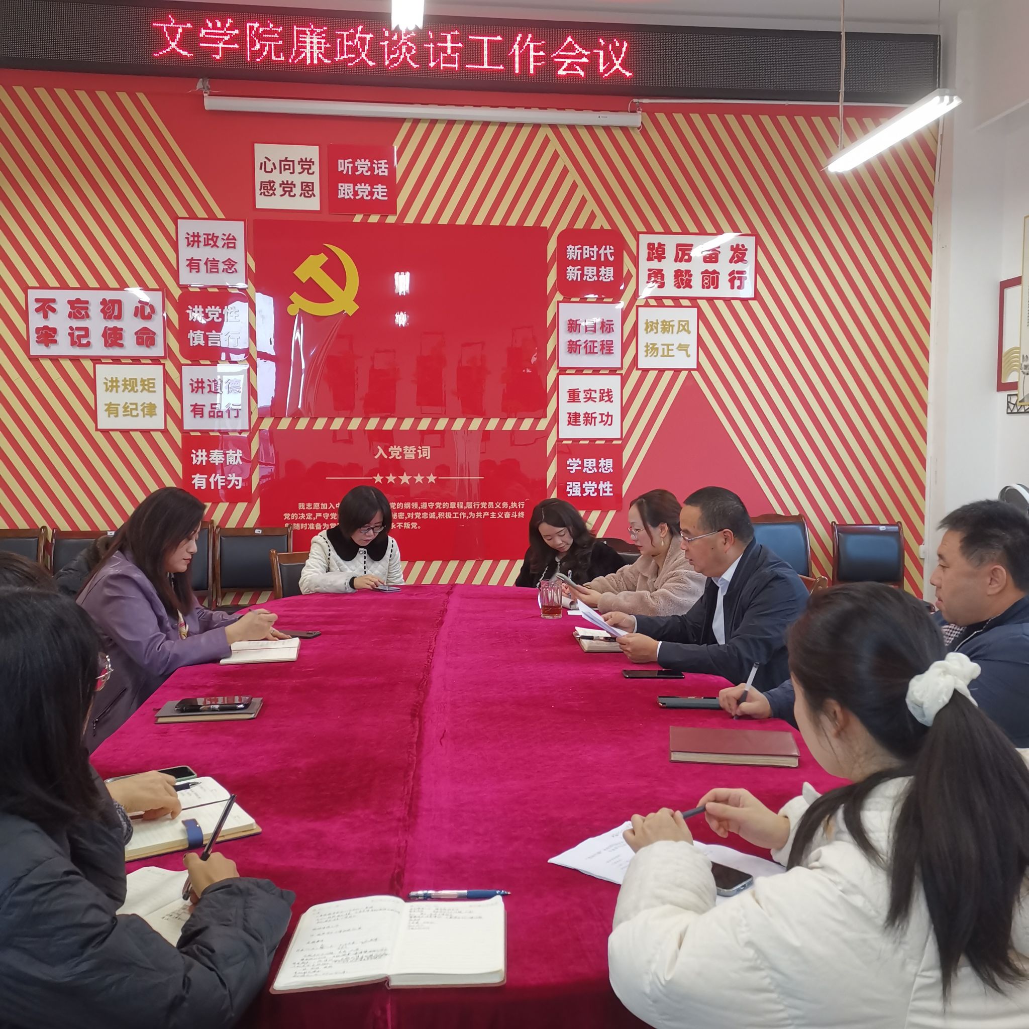 为进一步落实学校分层分类全覆盖廉政谈话工作安排,2024年11月11日上午,文学院召开了学院廉政谈话工作动员会议,学院班子成员、党委委员、三办主任及全体行政人员参加会议。学院党委书记周艺主持会议。