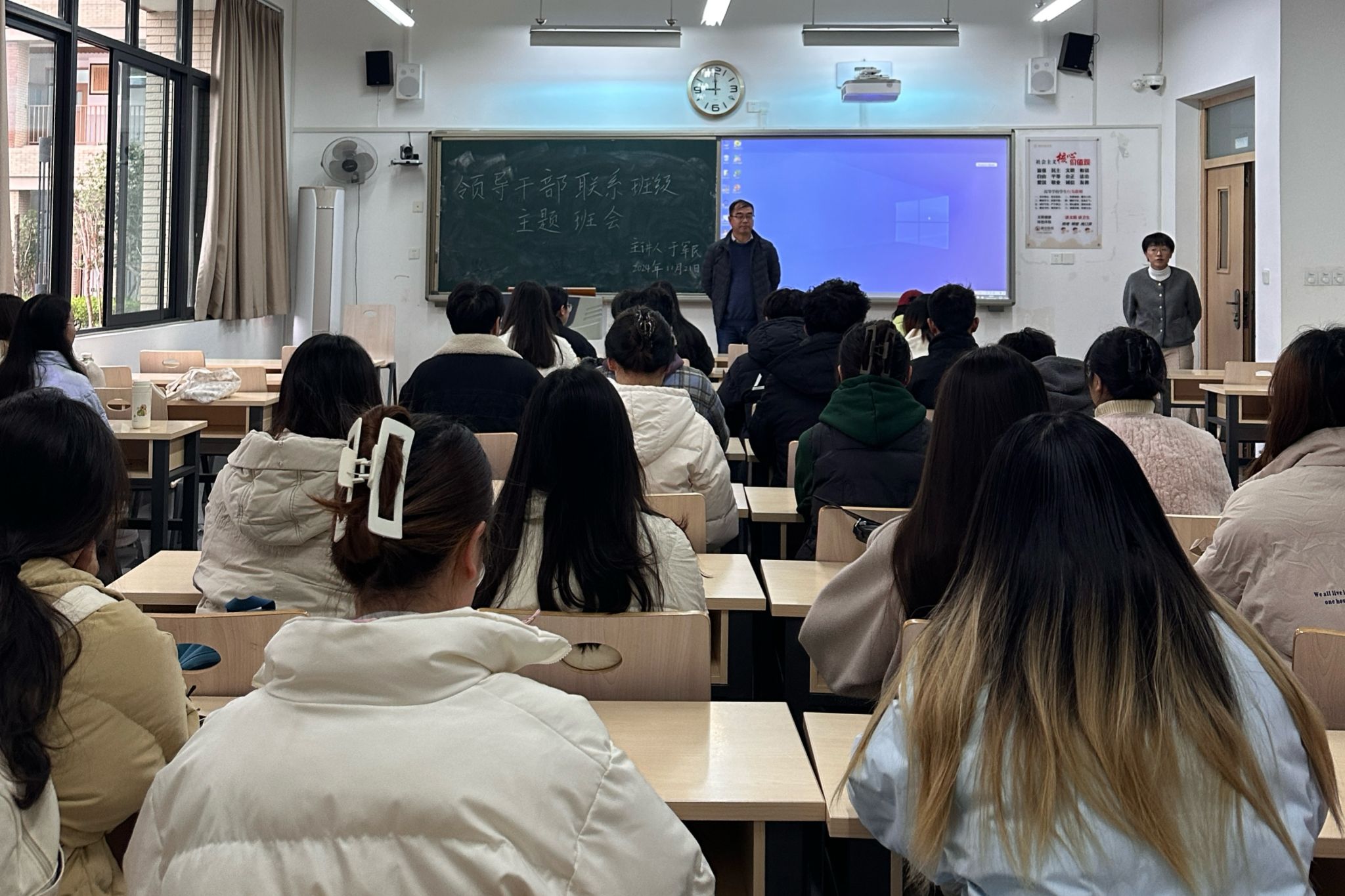 11月21日上午9点,明德楼A区102教室里,一场特别的师生交流活动在这里拉开帷幕。我院副院长于军民教授以“幸福源于奔跑”为主题,与2022级1班全体同学展开了一场意义非凡的心灵对话。