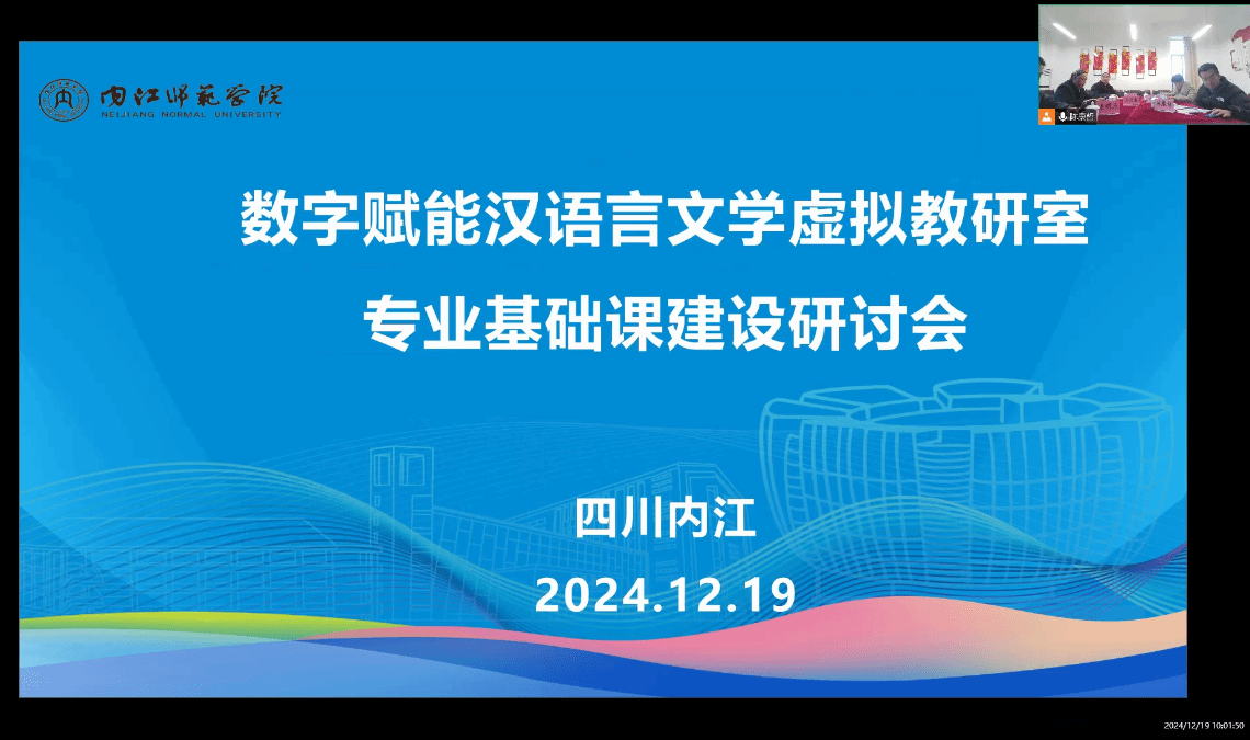 12月19日,我院成功举办“数字赋能汉语言文学虚拟教研室专业基础课建设”主题研讨会。内江师范学院校长陈晓春教授出席活动并致辞,包括四川大学、贵州师范大学、昆明学院、鞍山师范学院、河南工业大学新闻与传播学院等5所高校专家代表,北京字节跳动总经理张明月、超星公司超星集团高级销售经理肖瑶、北京师范大学出版社四川信息中心主任范冰冰等三家企业代表,以及文学院全体领导班子和部分教师参加了研讨活动。本次研讨会线下研讨地点设在我院506会议室,线上、线下同步进行,吸引了线上线下近百名教师参会。本次活动由院长助理王昕博士主持。