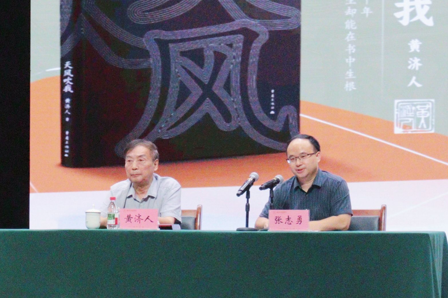 9月19日下午,文学院优秀校友、著名作家黄济人重返母校,在苌弘剧院举行以“抗战精神的文学见证和创作漫谈”为主题的讲学活动。此次讲座为内江师范学院汉安大讲堂第四期,讲座由学校党委常委、副校长张志勇主持。