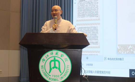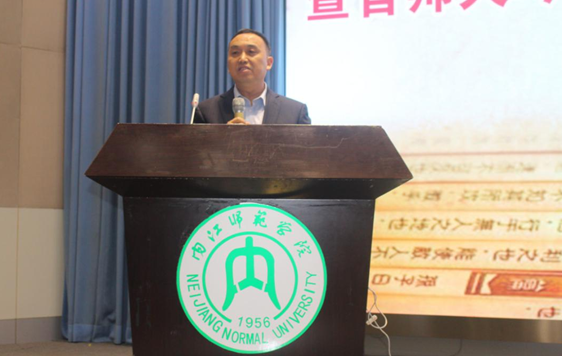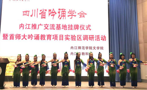 为了更好继承古诗文吟诵千年文脉,推进古诗文吟诵教育,激发广大学子对古诗文吟诵的兴趣,2019年10月25日上午9时,由内江师范学院文学院和内江市教育科学研究所主办的“四川省吟诵学会内江推广交流基地挂牌仪式暨首师大吟诵教育项目实验区调研”活动在我校第一学术报告厅举办。四川省吟诵学会会长王传闻、首都师范大学博士朱立侠、内江市人大副主任邓国军、文学院戴前伦教授等嘉宾出席活动,“四川省吟诵学会内江推广交流基地”全体成员,各县(市、区)中小学语文教研员、教师,吟诵实验区内各实验校校长和我院部分师生参加了此次活动。文学院副院长张文彬主持活动。