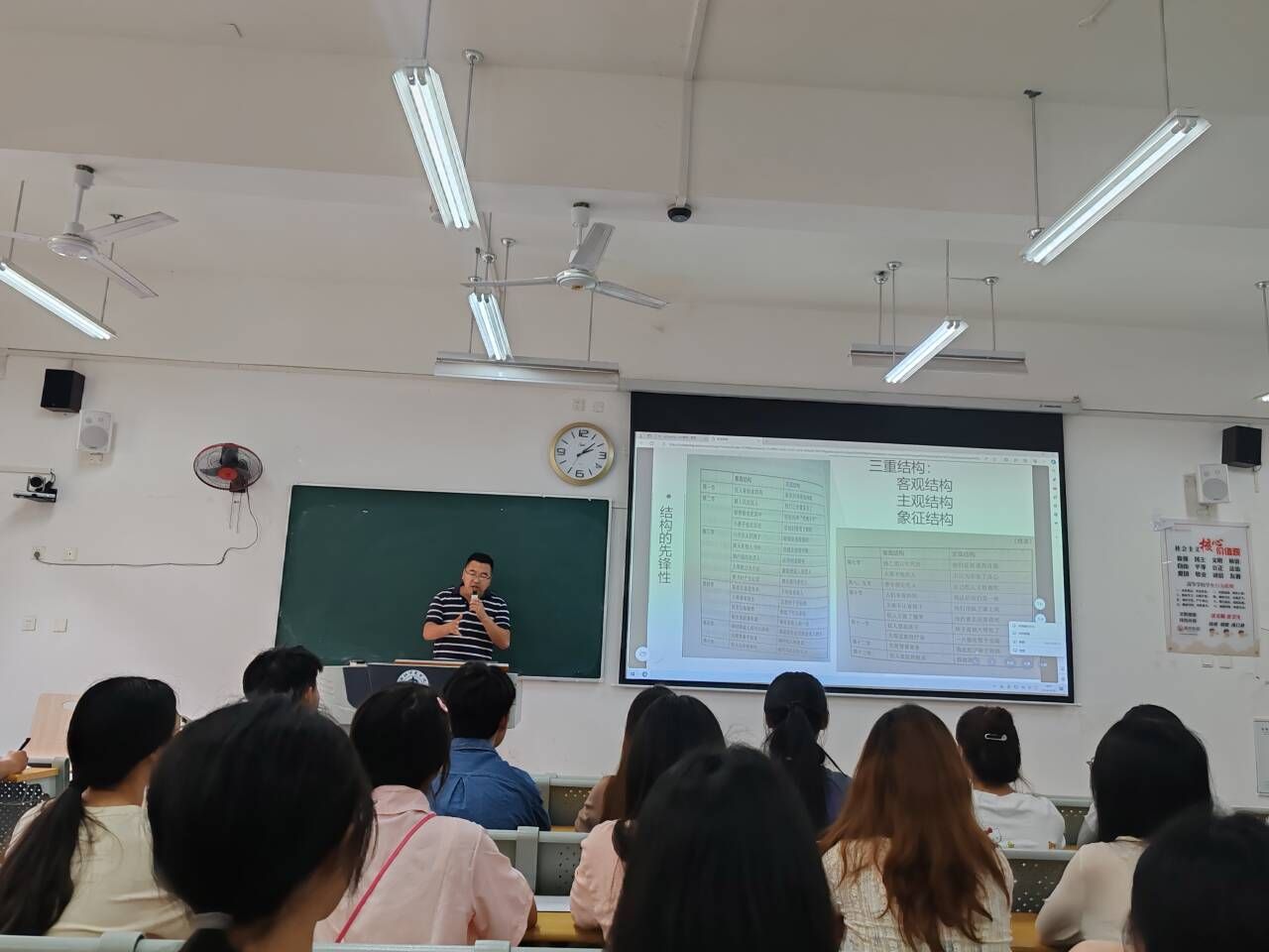 为加强青年教师队伍建设,引导青年教师加强教学创新改革,4月29日下午,文学院于明德楼102教室举行十一届青年教师教学竞赛的院内选拔赛。中国现当代文学与外国文学教研室推荐刘鹏老师参加,刘鹏老师主讲鲁迅的《阿Q正传》,刘老师引导同学们对《阿Q正传》的序进行了细致的解读。