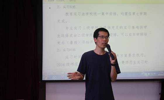 会上,张助理首先就学校关于2019年秋季学期实习安排的文件精神作了详细解读,就我院2016级学生实习工作作了全面部署,并就实习生行为规范及相关问题作了强调。张助理指出,教育实习和专业实习是学生重要的实践教学环节,他要求同学们高度重视教育实习或专业实习,在实习中学以致用、开阔眼界、丰富经验、增长才干。