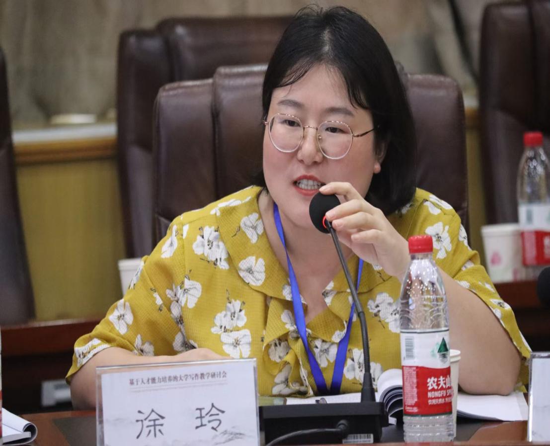 我院青年教师徐玲以《新文科背景下地方师范院校大学写作课程教学改革研究与实践——以内江师范学院为例》为题作小组发言。她介绍了内江师范学院大学写作课程建设的发展历程、当前建设情况。要以优化教学内容、落实教学方法、改革考核方式和评价标准、强化学习效果反馈机制为出发点,对新文科背景下地方师范院校大学写作课程教学改革进行探索实践,围绕课程育人为主线,有效推动教与学、学与练,练与创深度融合,实现课堂教学体系与课外支持体系在培养目标、课程育人理念与实践策略等方面协同共进。徐玲老师积极与同行专家进行深入交流,探讨学习了各位老师分享的宝贵又实用的大学写作课程建设实践经验和人才培养的思路。